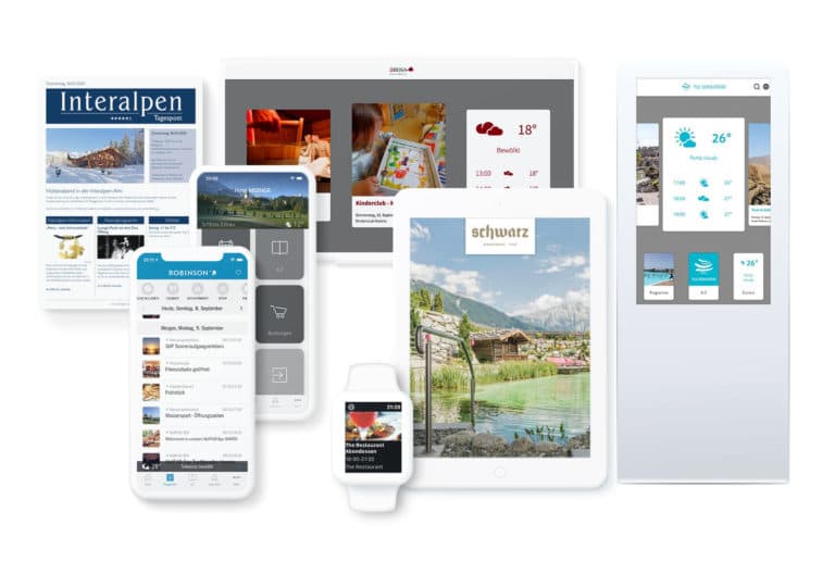 All frequently updated print materials such as SPA programs, activity plans, restaurant menus and opening times are also automatically generated with Hotel MSSNGR. Our tool automatically delivers plans with great attention to detail. Color coding, icons, time formatting – everything is taken care of. Everything that is printed out and connected to the hotel’s guest communication is created 100% precisely by Hotel MSSNGR’s Carbon PDF tool.