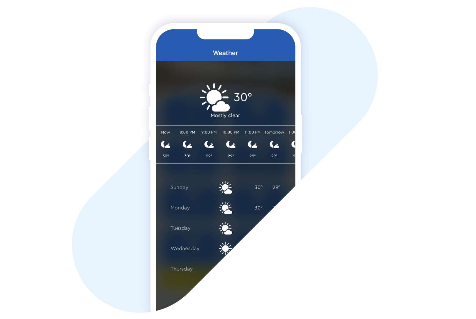 Hotel MSSNGR’s native apps provide powerful weather forecasting. The data includes the hourly 48-hour weather with a probability of rain and a 5-day outlook. The forecast data is updated in real time.